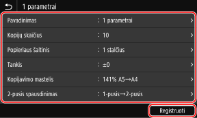 Patikrinkite parametrus ir spustelėkite [Registruoti].