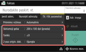 Skirtuke [TX/RX parametrai], sukonfigūruokite originalo nuskaitymo parametrus.