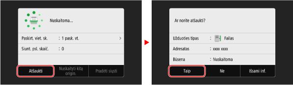 Norėdami atšaukti nuskaitymą, vykdykite ekrane pateikiamus nurodymus.