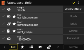 Te saate määrata aadressiraamatus registreeritud sihtkohti, kui kuvate aadressiraamatu kuvalt [Avamenüü] või juhtpaneelil skannimise või faksimise kuval.