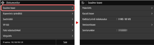 Kui puudutate üksuse nime või nuppu, saab selle valida. Valitud kuva avatakse või valitud funktsioon teostatakse.