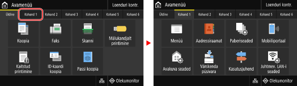 Puudutage ekraani ja libistage sõrmeotsa. Ekraan liigub sõrmega libistamise suunas. Näiteks kuva [Avamenüü] liigub sõrmega libistamise suunas asuvale vahekaardile.