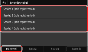 Kasutage lemmiksätete registreerimiseks juhtpaneeli. Lemmiksätteid ei saa registreerida arvutist rakenduse Remote UI (Kaugkasutajaliides) kaudu.