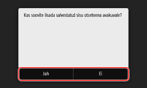 Kui valite [Ei], lemmiksäte registreeritakse, kuid otsetee nuppu ei lisata. Otsetee nupu saate kuvale [Avamenüü] hiljem lisada.