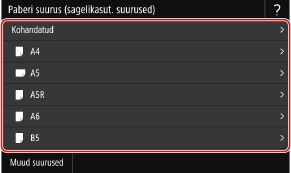 Vajutage [Muud suurused] ja valige paberi formaat kuvatavast loendist.