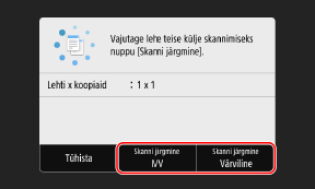 Saate valida iga passi värvusrežiimi (mustvalge või värviline). Järgmise originaali mustvalgelt kopeerimiseks vajutage [Skanni järgmine MV]. Värviliselt kopeerimiseks vajutage [Skanni järgmine Värviline].