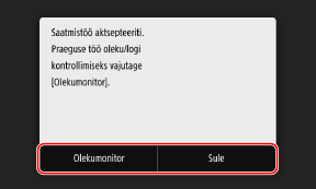 Saatmise oleku ja logi vaatamiseks vajutage [Olekumonitor].