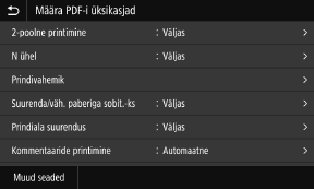 [Kommentaaride printimine] Määrake, kas soovite PDF-i kommentaare printida. Kui valite [Automaatne], prinditakse dokument koos kommentaaridega*1. *1 Ainult printimise kommentaarid PDF-failis. |