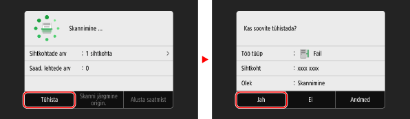 Skannimistoimingu tühistamiseks järgige ekraanil kuvatavaid juhiseid.