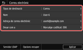 Si utilitzeu un servidor LDAP, registreu el servidor LDAP que s'utilitzarà per cercar destinacions a l’equip. Desament de servidors LDAP
