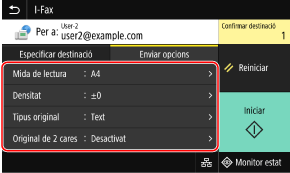 Si la destinació està restringida en l'enviament per la Configuració d'autenticació de la Funció d'enviament, no podreu especificar cap altra destinació. Per obtenir-ne informació, contacteu amb l'administrador.
