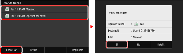 Podeu cancel·lar l'enviament d'un fax seguint les instruccions de la pantalla.