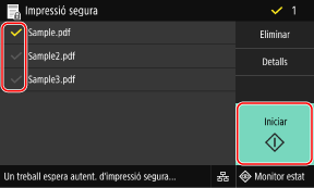 Seleccioneu la casella de les dades segures que voleu imprimir i premeu [Iniciar].