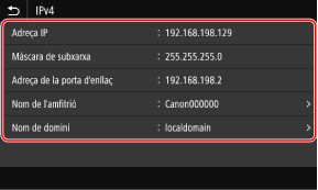 Podeu veure la configuració de l'adreça IP establerta a l'equip, com ara l'adreça IPv4 i l'adreça IPv6.