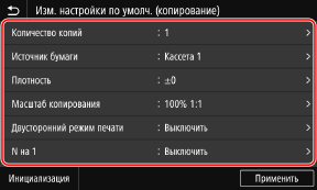 Заданные по умолчанию параметры сканирования, копирования и других функций, которые вызываются с помощью панели управления, можно изменять.