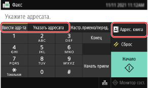 Укажите адресат на вкладке [Ввести адр-та], [Указать адресата] или [Адрес. книга]. Указание адресатов