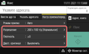 На вкладке [Настр.приема/перед.] задайте настройки сканирования оригинала. Настройки сканирования оригинала для отправки по факсу