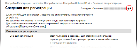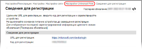Щелкните ссылку, отображаемую в поле [URL для регистрации].