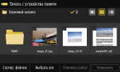 Установите запоминающее устройство USB в аппарат, затем нажмите на экране [Главный] кнопку [Печать с устр-ва памяти] для отображения файлов и папок в запоминающем устройстве USB.