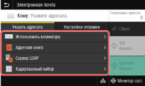 Если при отправке адресат запрещен из-за параметров аутентификации для функции отправки, указать другого адресата невозможно. За подробными сведениями обращайтесь к администратору.