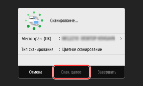 Чтобы продолжить сканирование оригиналов, поместите их на стекло экспонирования и нажмите [Скан. далее].
