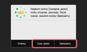 Чтобы продолжить сканирование оригиналов, поместите их на стекло экспонирования и нажмите [Скан. далее].