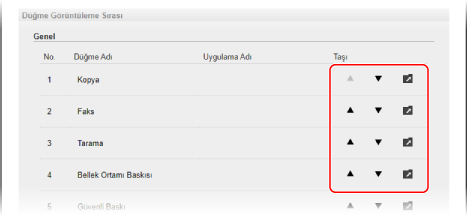 Düğme adları listesini kullanarak görüntüleme sırasını değiştirmek için [Liste Görünümünde Düzenle] öğesine tıklayın.