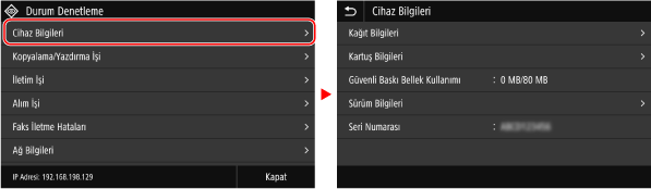 Bir öğe adına veya düğmeye dokunduğunuzda, öğe seçilebilir. Seçilen ekran görüntülenir veya seçilen işlev gerçekleştirilir.