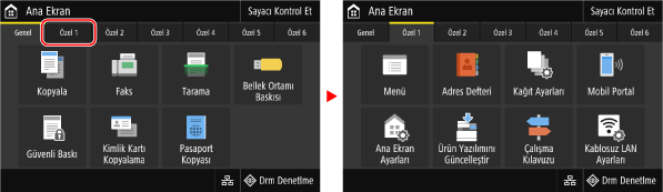 Ekrana dokunun ve parmağınızın ucuyla kaydırın. Ekran, parmağınızı kaydırdığınız yönde hareket eder. Örneğin [Ana Ekran], parmağınızı kaydırdığınız yöndeki sekmeye taşınır.