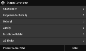 Ekran Görünümünü DeğiştirmeGörüntüleme dilini ve birimleri değiştirerek işletim paneli görünümünü değiştirebilir, mesajları gösterip gizleyebilirsiniz. [Ekran Ayarları]