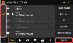 Belirtilecek hedeflerin onay kutularını işaretleyin ve [Uygula] öğesine basın.