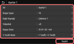 Amacınıza uygun ayarları, ayrıca tarama, faks ve kopyalama işlevleri için "Favori Ayarlar" olarak geri çağırmak istediğiniz ayarları kaydedebilirsiniz.