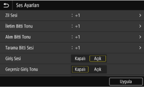 Kopyalama, tarama veya makinedeki diğer bir işlev tamamlandığında sesli uyarı verilip verilmeyeceğini ayarlayın.