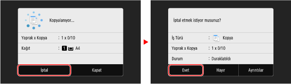 Kopyalama işlemini iptal etmek için ekrandaki talimatları takip edin.