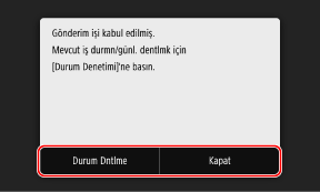 Gönderme durumunu ve günlüğünü görüntülemek için [Durum Dntlme] öğesine basın.