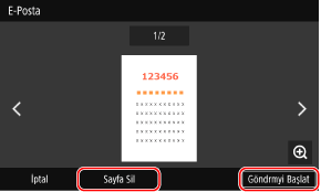 Göndermek istemediğiniz sayfa varsa ilgili sayfayı açın ve [Sayfa Sil] öğesine basın.