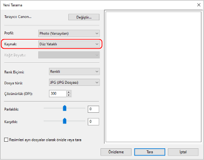 Sık kullanılan tarama ayarlarını profiller olarak kaydetmek için aşağıdaki prosedürü kullanabilir ve sonrasında bu ayarları tarama sırasında gerektikçe çağırabilirsiniz.