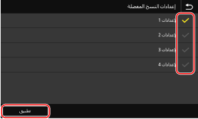 حدد مربعات الاختيار للإعدادات التي تريد تعيينها كأزرار اختصار، واضغط على [تطبيق].