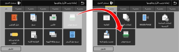 يمكنك إعادة ترتيب الأزرار على الشاشة [الرئيسية] ونقل الأزرار إلى علامات تبويب أخرى.