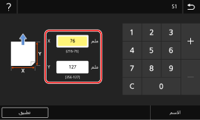 يمكنك تسجيل الأحجام عند استخدام ورق بحجم غير قياسي محدد بشكل متكرر. ويمكنك استدعاء الورق من شاشة إدخال الحجم، ما يجنبك مشكلة إدخال الحجم.