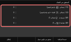 من لوحة التشغيل، اضغط على [التحقق من العداد] في الشاشة [الرئيسية].