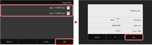 في حالة عرض قائمة المهام، حدد المهمة المطلوب إلغاؤها، واضغط على [إلغاء]
