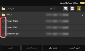 * لا يمكنك تحديد ملفات PDF وملفات الصوت (ملفات JPEG أو TIFF) في نفس الوقت.
