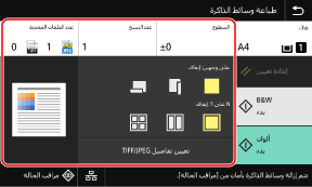 تُعرض شاشة إعدادات طباعة وسائط الذاكرة.
