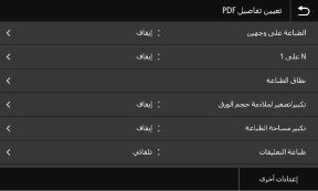لعرض الشاشة، اضغط على [تعيين تفاصيل PDF] على شاشة إعدادات طباعة وسائط الذاكرة.
