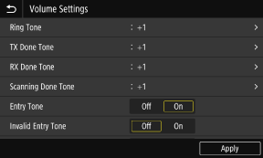 [Other Volume Set.] را فشار دهید، صفحه [Volume Settings] نمایش داده میشود.