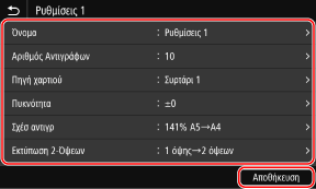 Ελέγξτε τις ρυθμίσεις και κάντε κλικ στο [Αποθήκευση].