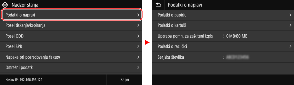 Ko tapnete ime elementa ali gumb, lahko element izberete. Prikaže se izbrani zaslon ali se izvede izbrana funkcija.