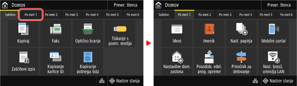 Ko tapnete zavihek, se prikaže zaslon za izbrani zavihek.