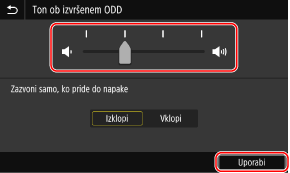 Če želite zvok dokončanja prevajati samo ob napaki, nastavite [Zazvoni samo, ko pride do napake] na [Vklopi].